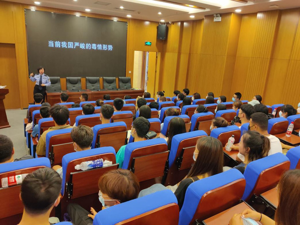 当天下午,陈喜东老师带领大家在南校区综合楼下乘车统一前往禁毒基地,经过短暂的车程大家顺利抵达现场。首先,在禁毒教育基地管理老师的带领下,大家聆听了禁毒成果、毒品种类、毒品危害以及毒品识别等相关知识的讲解,并深入了解了毒品的本质和毒品给人类和社会带来的严重的危害;紧接着,陈老师带领大家观看了《扫毒》这部电影,紧凑的剧情和触动人心的画面,让同学们受到了无与伦比的震撼,并通过陈老师的剧情分析与讲解,同学们纷纷表示要“珍爱生命,远离毒品”;最后,同学们聆听了禁毒主题讲座,巩固了对禁毒的相关知识的学习。讲座结束,陈老师讲道,今天的活动虽小,但是对你们的教育意义却是一辈子的,希望通过今天的外出学习,同学们能更加提高防范意识,学习的同时保护好自身安全。
