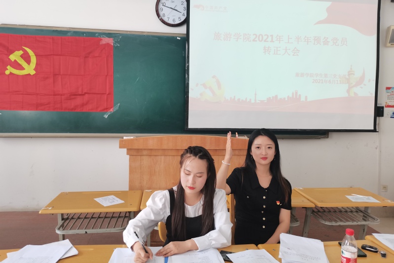 会议伊始,全体起立,奏唱国歌。首先由申请转正的同志进行发言汇报自己在预备期的各方面的表现。发言过程中,各位同志讲道自己在生活和学习中,认真学习党的纲领、坚决服从党的指挥、积极向党组织靠拢,每位同志都明确表达了自己入党的愿望和决心;随后,由该同志的入党介绍人对该申请人的思想、学习、生活、工作等方面的表现进行总结评价,并采取不记名的投票方式,对各预备党员进行了投票表决,肯定了周宇倩等8名同志的成绩、工作及思想;最后,由支部书记宣读同意周宇倩等8名同志成为中共正式党员的决定。支部书记赵雪同志表示,希望新加入的正式党员能够保持良好的风貌,继续发扬党员的模范先锋作用,要继续学习党的知识,始终与党组织保持一致,不忘初心,争取做一名合格的共产党员。