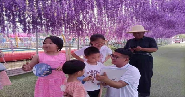 7月19日,“优能A+”培训公司14名小朋友参加研学课程实践活动,实践团队员们以浪街较为成熟的向日葵地、动物乐园和剪纸基地为课程资源,精心策划了向日葵主题、动物萌宠主题、手工剪纸主题的课程,带领孩子们进行了一次难忘的研学之旅。在浪街景区经营户等各方支持下,在队员们的团结协作下,此次活动获得圆满成功,赢得了家长与员工们的一致好评。之后,实践团就本次活动进行了总结交流。