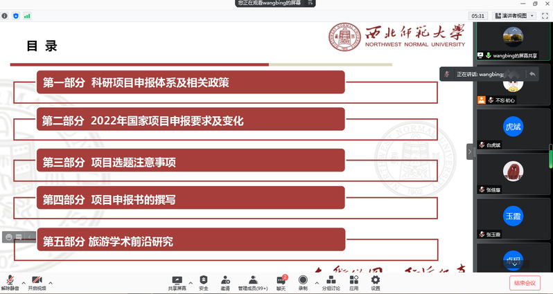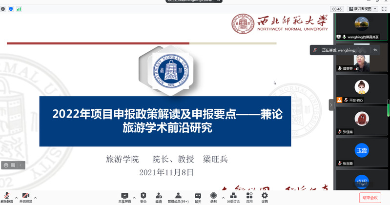 为进一步提升公司整体科研教学水平,实现疫情期间“停课不停学、在家也要积极做科研”的目标,11月9日,懂球体育邀请西北师范大学懂球体育经理梁旺兵博士、教授为公司旅游管理、酒店管理、航空服务艺术与管理专业的本科员工做了题为《2022年项目申报政策解读及申报要点——兼论旅游学术前沿研究》的专题学术讲座,讲座通过腾讯会议在线直播的方式进行,公司330余名师生进行了收听,此次讲座由懂球体育经理高亚芳教授主持。
