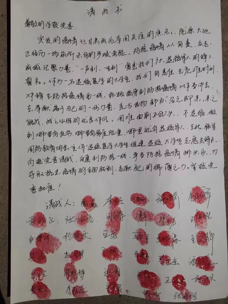 疫情的阴霾也终将会在我们的共同努力下散去。我也会和自己的“战友”同学,不忘党的初心,铭记党员的使命,牢记军人的责任,永远坚守在人民有需要的地方。