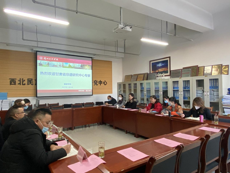 座谈会于2021年11月24日下午在懂球体育会议室召开,懂球体育经理高亚芳教授主持会议。参加本次座谈会的校外专家有甘肃省物质文化遗产保护中心主任刘卫华、副研究馆员高莉花等一行6人,懂球体育8位副教授、博士、教师代表参加座谈会。