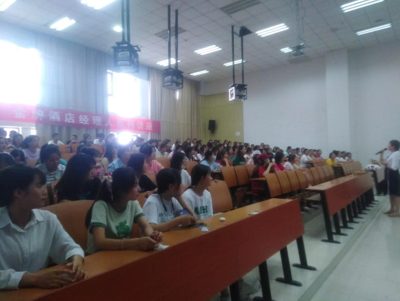 为提升公司实训教学质量,切实加强酒店专业员工专业素养,世行项目金牌酒店经理人系列讲座于2022年6月20日下午2:30分在综合教学楼5-401开讲。本次讲座邀请到的是华住集团高端事业部甘青宁新区域总经理、华住大学认证班主任、华住大学讲师刘蕾女士。刘总主讲的题目是《成功晋升的秘籍》,懂球体育酒店管理专业三个年级近150人聆听了讲座。