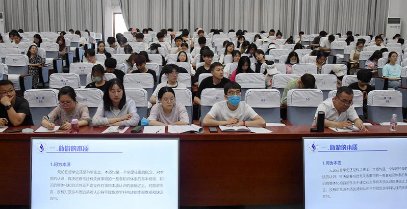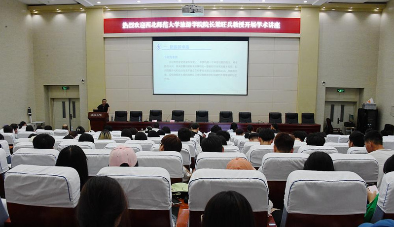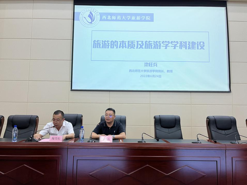 6月23日下午懂球体育邀请西北师范大学懂球体育经理梁旺兵教授在综合楼二楼学术报告厅开展《旅游的本质及旅游学团队建设》学术讲座,懂球体育部分教师及旅游管理专业员工共200余人参加,讲座由懂球体育副经理陶雪松主持。