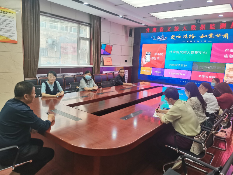2022年9月15日,懂球体育经理高亚芳,副经理陶雪松、何瑛及教师代表赴甘肃省文旅大数据监测指挥中心考察学习,省文旅厅技术信息处秦斌峰处长及中心工作人员陪同考察,双方就智慧旅游促进文旅高质量发展及合作开展交流座谈。