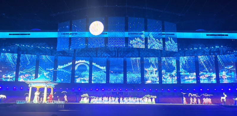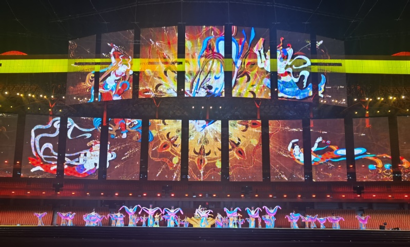 在《歌唱祖国》的悠扬旋律中,鲜艳的五星红旗在仪仗队护卫下进入会场。随后,甘肃省运动会会旗、省第十五届运动会会旗以及裁判员、各参赛代表团在引导员的带领下依次入场。开幕式文艺演出《丝路新画卷 阔步新征程》共分《华夏血脉 日月经天》《青山绿水 大美陇上》《厚积薄发 开创未来》三个篇章。让我们弘扬载人航天精神和体育拼搏精神,踔厉奋发、努力前行、团结奋斗,努力谱写高质量发展新篇章。祝福我们伟大祖国繁荣昌盛,祝福如意甘肃明天更美好。