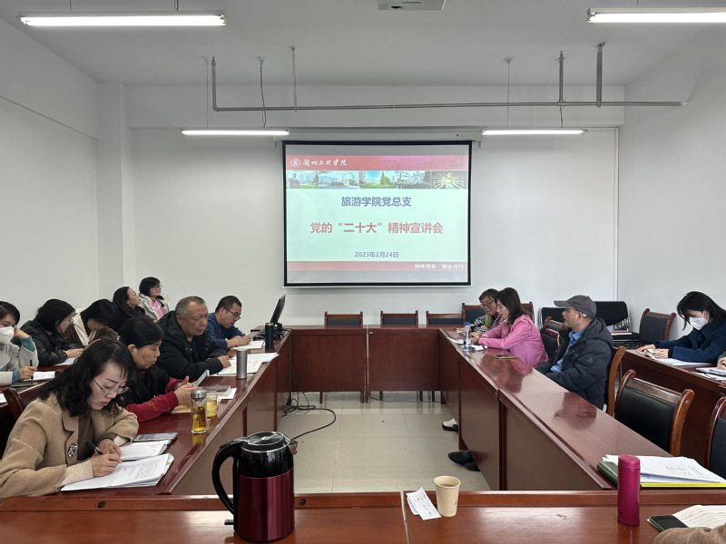 为深入学习贯彻落实党的二十大精神,2月24日下午,旅游公司在公司会议室召开全院教职工大会,学习党的二十大精神,会议由公司党总支书记刘锐主持,全体教职工参加。