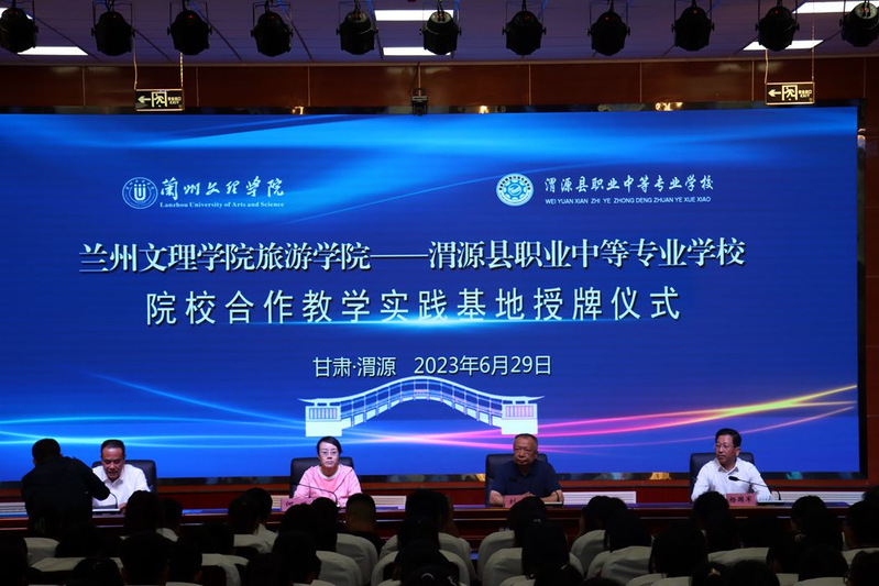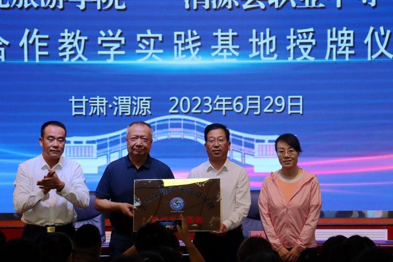 6月29日,懂球体育一行师生赴渭源县职业中等专业公司为院校合作教学实践基地授牌。渭源县职业中等专业公司领导班子、部分师生代表参加。