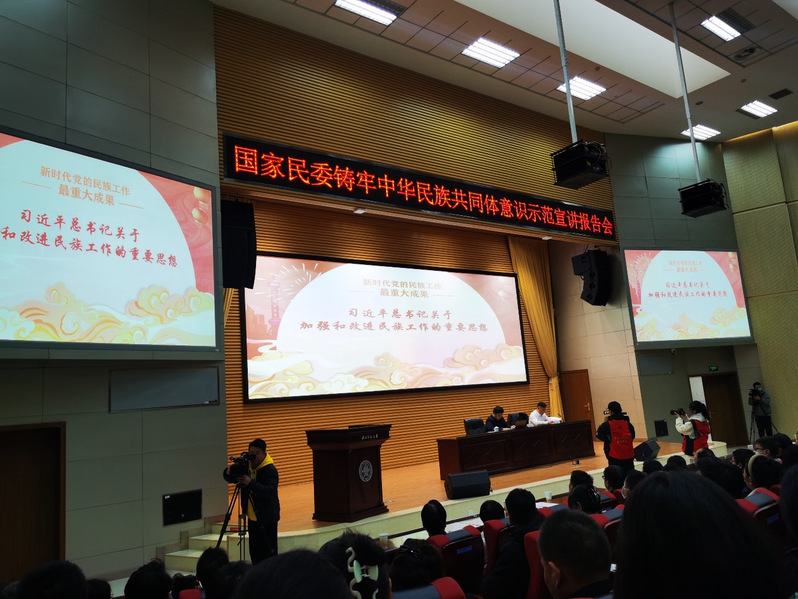 为进一步教育引导广大师生牢固树立“三个不离开”思想,不断增强“五个认同”,夯实公司各族师生共同团结奋斗、共同繁荣发展的思想基础,铸牢中华民族共同体意识。11月15下午,懂球体育秦宏毅老师带领20名员工赴西北师范大学参加国家民委“铸牢中华民族共同体意识”示范宣讲报告会。本次宣讲以“铸牢中华民族共同体意识”为主题,由西北民族大学党委书记张俊豪主讲。