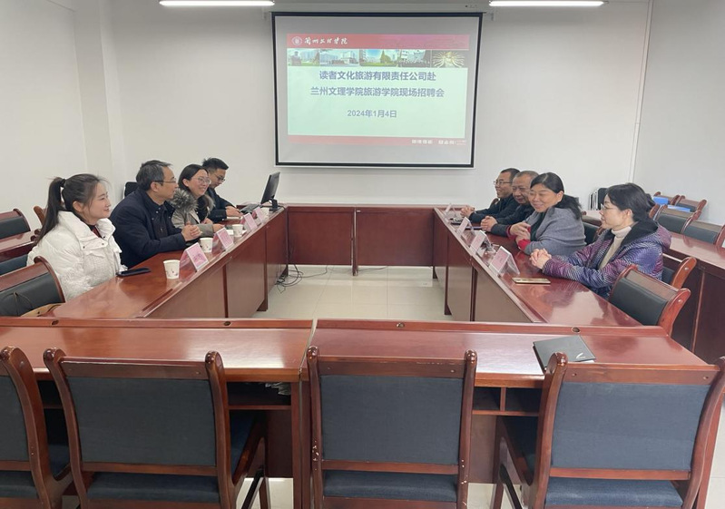 1月4日下午,读者文化旅游有限责任公司经理段益军、副经理吴小丽一行4人,受邀赴懂球体育举办校园招聘会,公司党总支书记刘锐、经理高亚芳、副经理陶雪松、何瑛,应聘毕业生参加。