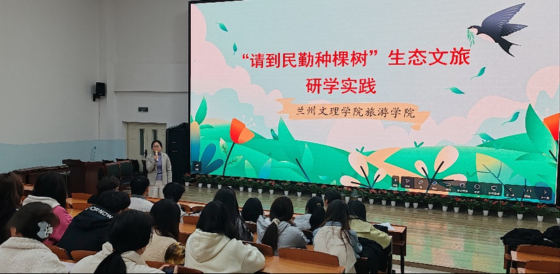 途中牛瑞雪老师就生态文明发展理念下,生态旅游与乡村振兴的互促共融做了展望。同学们积极互动,武威籍同学重点向大家介绍了家乡风土及发展现状,同学们对此次实践活动充满了期待。
